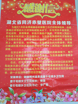近日 ,北京爱康集团旗下同济赤壁医院就收到这样一封来自三千公里外的感谢信,感谢信内容如下: