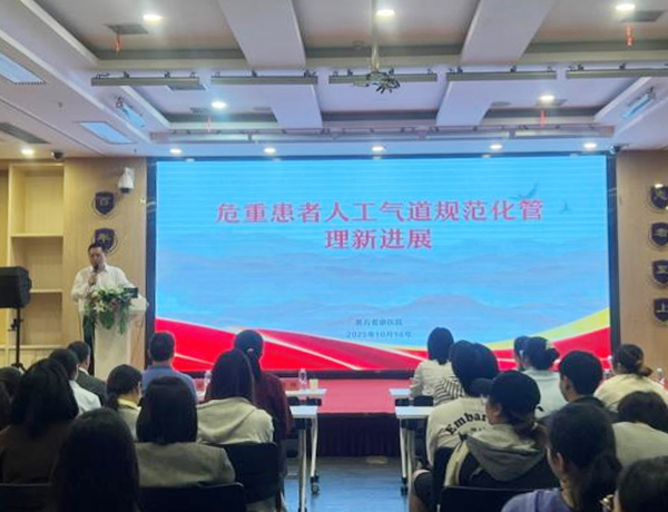 2025年10月16号由黄石爱康医院重症医学科举办的护理继续教育项目《危重患者人工气道规范化管理新进展》培训班隆重开幕,此次授课嘉宾是来自华中科技大学同济医学院附属协和医院重症医学科护士长黄海燕老师,黄石市中心医院重症医学科护士长陈春艳老师;参会嘉宾黄石爱康医院院长盛伟,重症医学科叶涛主任,护理部杨艳主任,科教科朱海波主任。